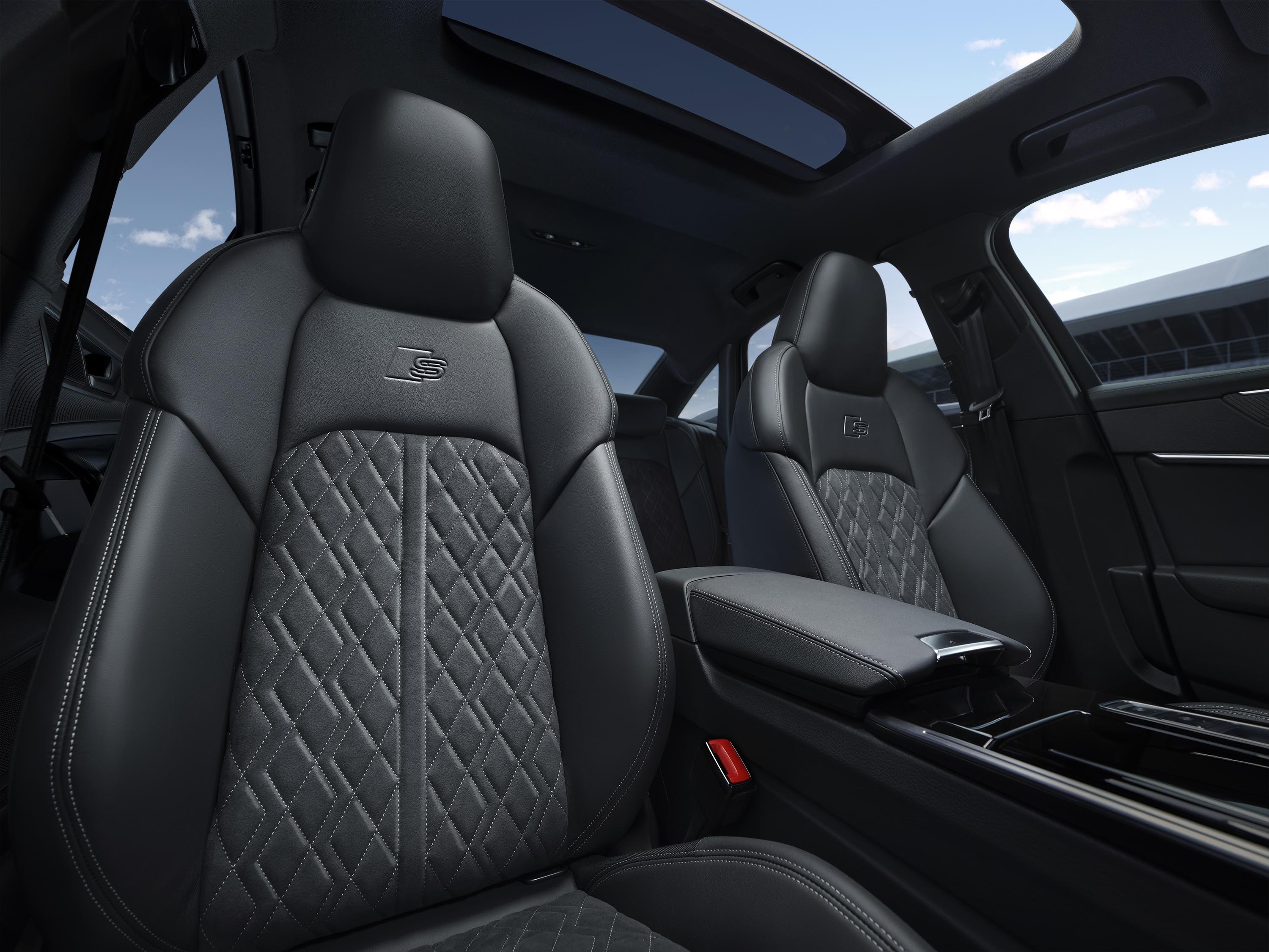 此外,新奥迪 S6 Limousine 标配奥迪超级运动座椅,采用 Dinamica 与真皮组合面料,并配有 S line 徽标与菱形缝线装饰,同时也可选装更具尊贵质感的华格纳真皮,以全方位的超高品质营造出更加奢华舒适的内部空间。新增的火山灰木饰条,进一步提升车内豪华运动氛围。标配的前门迎宾灯,在夜间时能够凸显整车豪华氛围。