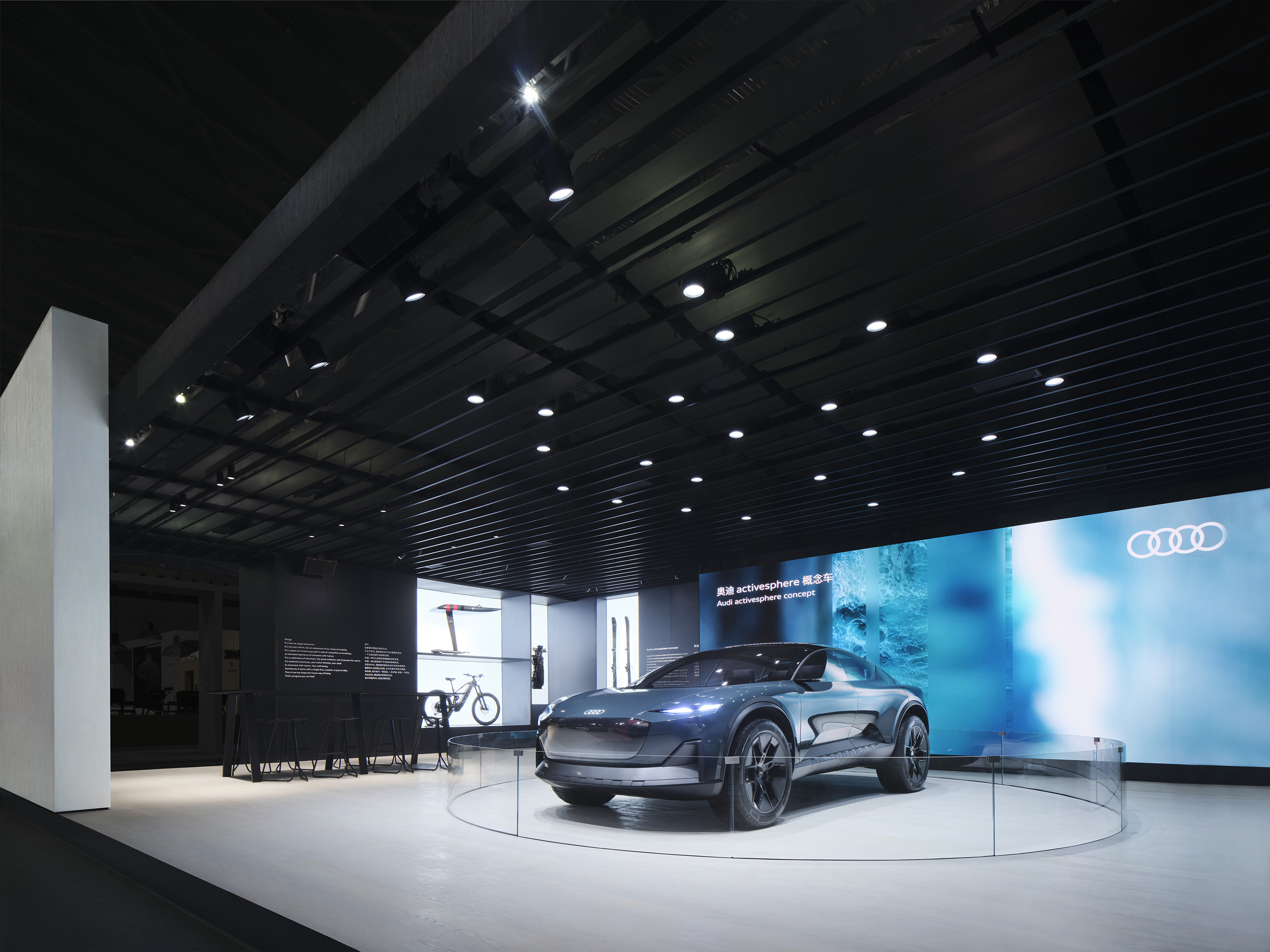* 奥迪 activesphere 概念车将奥迪 Sportback 的优雅、SUV 车型的实用,以及强劲的越野性能巧妙地融为一体,配合创新的增强现实技术(AR),呈现出在功能设计、交互体验上的全新突破。