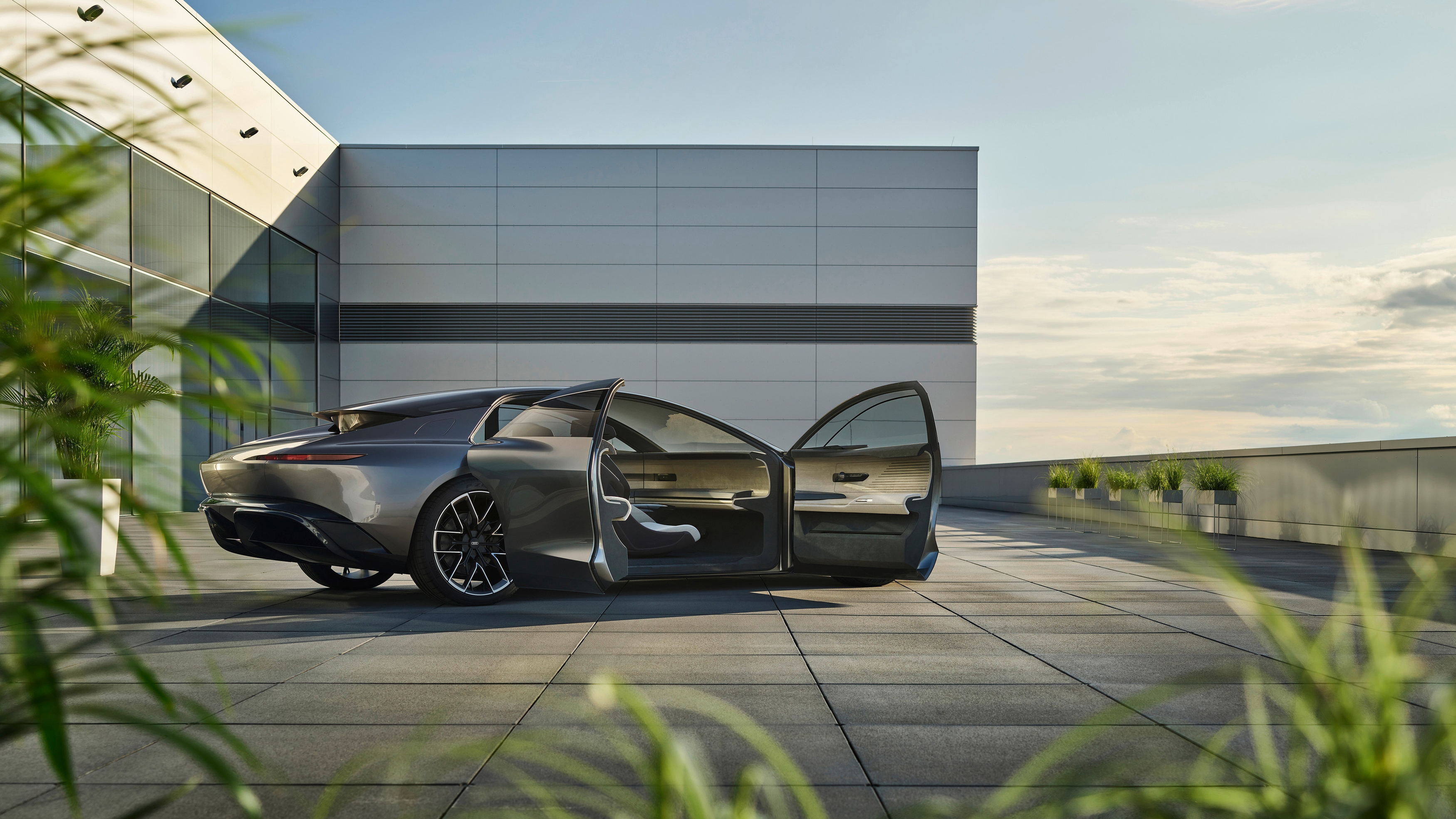 内饰设计方面,装饰表面与功能元件的线条一气呵成。开放、宽敞的车内布局给人以独特的空间感,隐藏了传统的方向盘、踏板和仪表盘,让车内空间变得更加自由、开阔。同时,宽大的玻璃表面、前风挡以及透明的车顶都强化了架乘的体验。