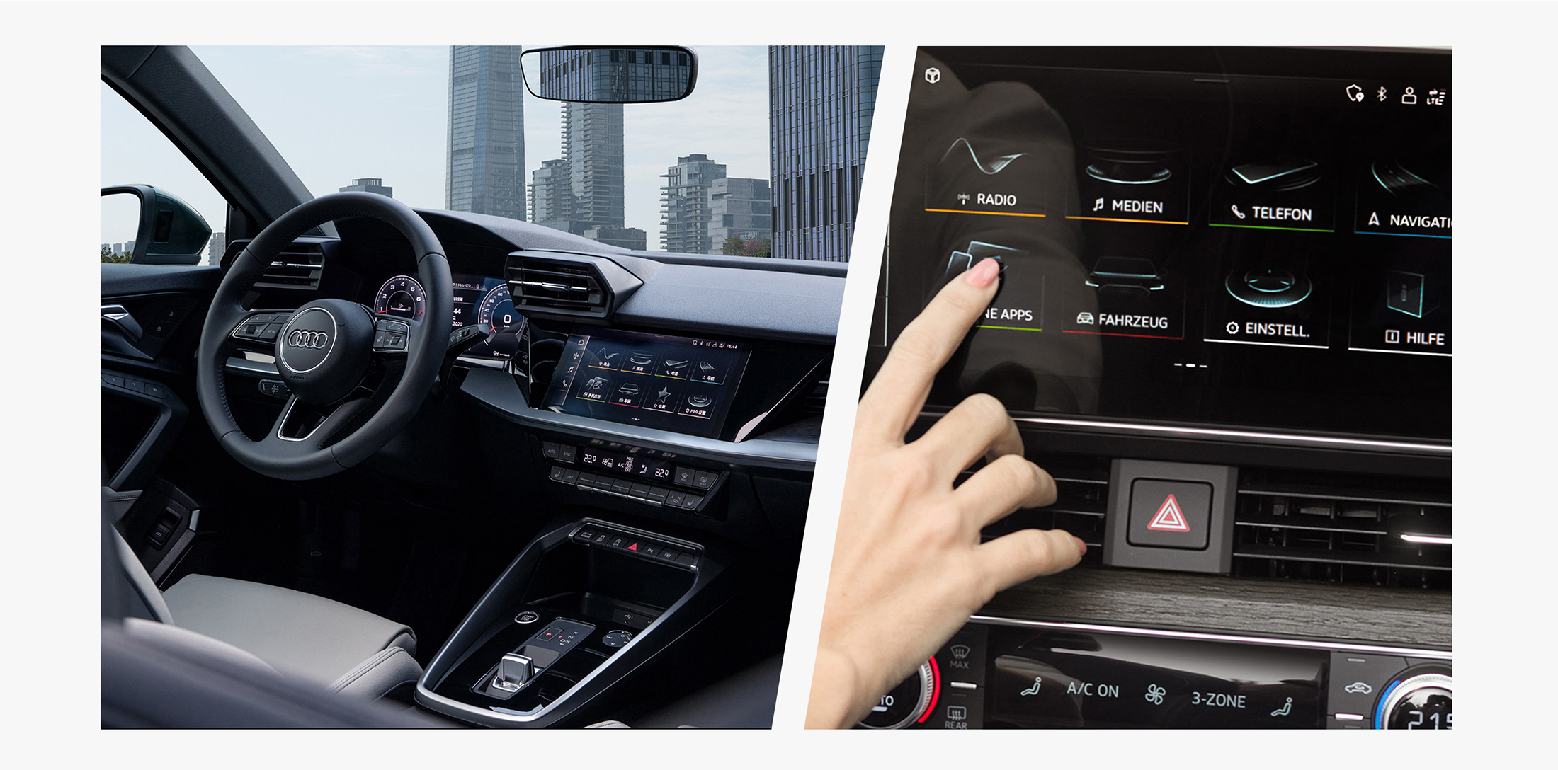 奥迪的多媒体交互触控响应操作系统通过感觉刺激来优化人机互动。两个中央触控屏提供了触觉、声音和视觉响应功能,使操作能力达到了一个全新的高度。