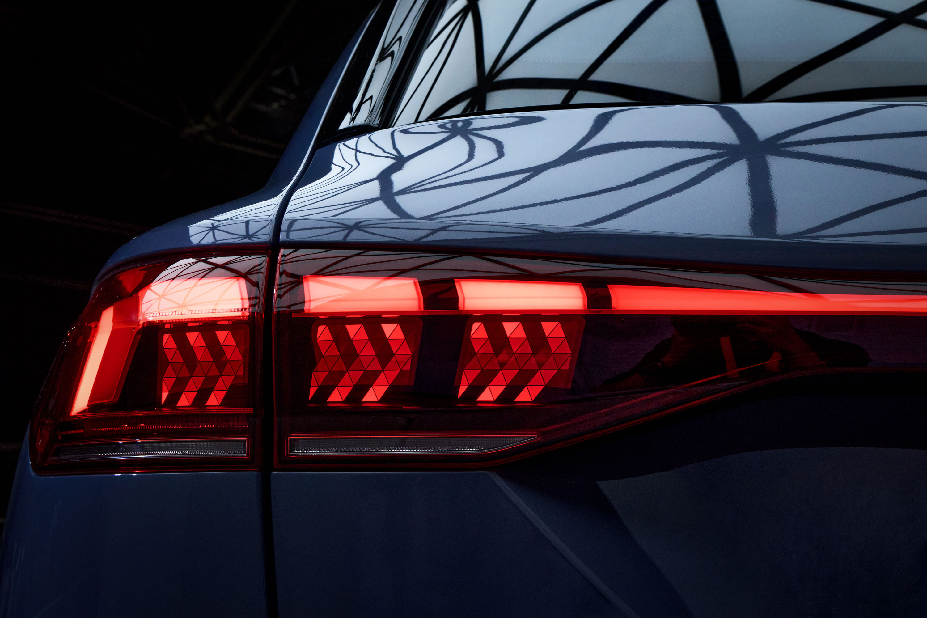 奥迪 Q6L e-tron 首次搭载的第二代数字 OLED 尾灯技术,引领汽车灯光技术迈向新的巅峰,其增加发光单元数量的同时(每块 OLED 面板的发光单元数量由第一代 6 个增加至 60 个,6 块面板共有 360 个发光单元),还拥有 12 段明暗调节,每秒钟可刷新 100 次,配合 8 种数字灯光签名的强大功能,充分满足用户的多元化个性表达。奥迪 Q6L e-tron 数字 OLED 技术消除了表面光源所需的反射器、光导或光学器件,确保了均匀性和高对比度的灯光表现。车尾的集成 LED 灯带和 3D 玻璃结合,则使尾灯样式与其他照明功能区分明显,同样引领了汽车灯光设计的新潮流。