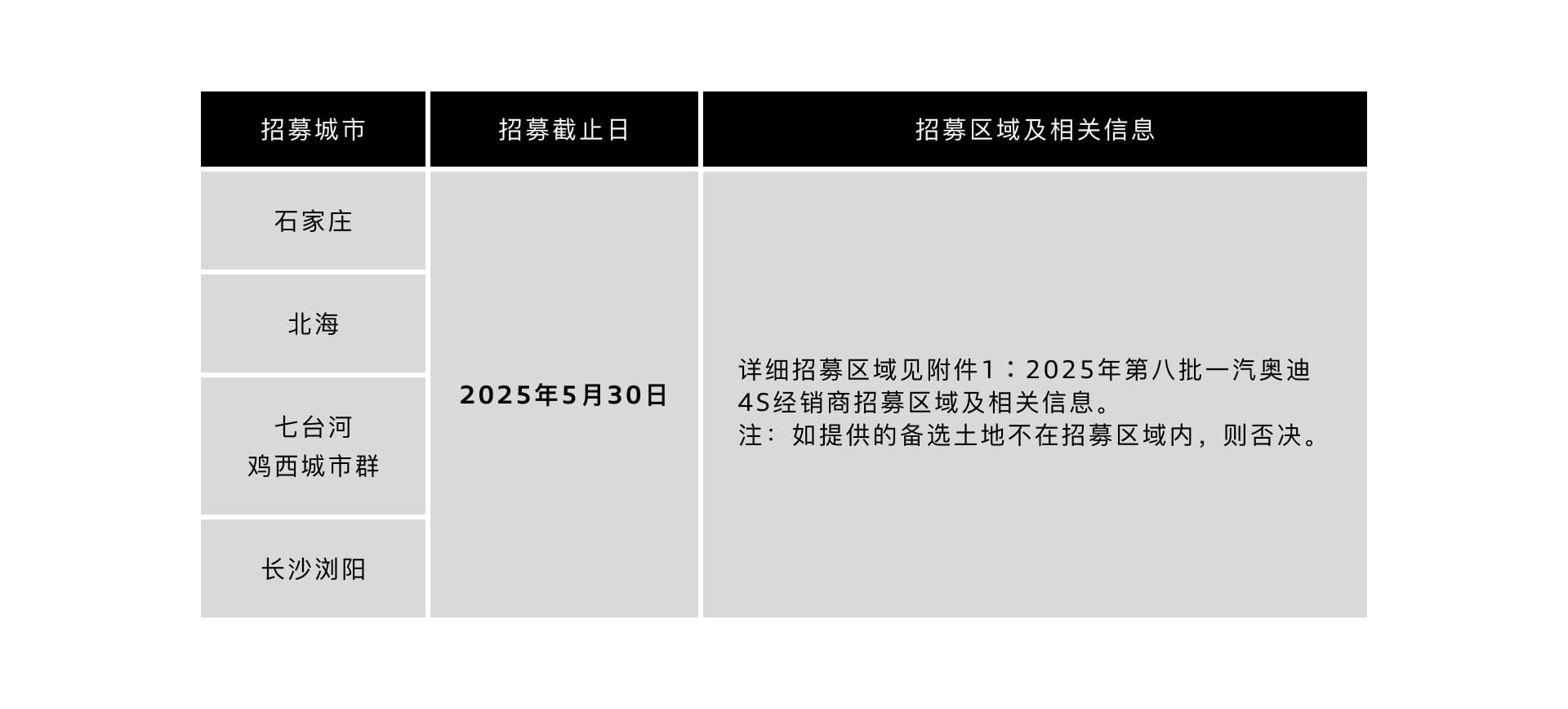 2.在招募区域(详见附件 1 )内有满足奥迪建设基本要求的备选土地;